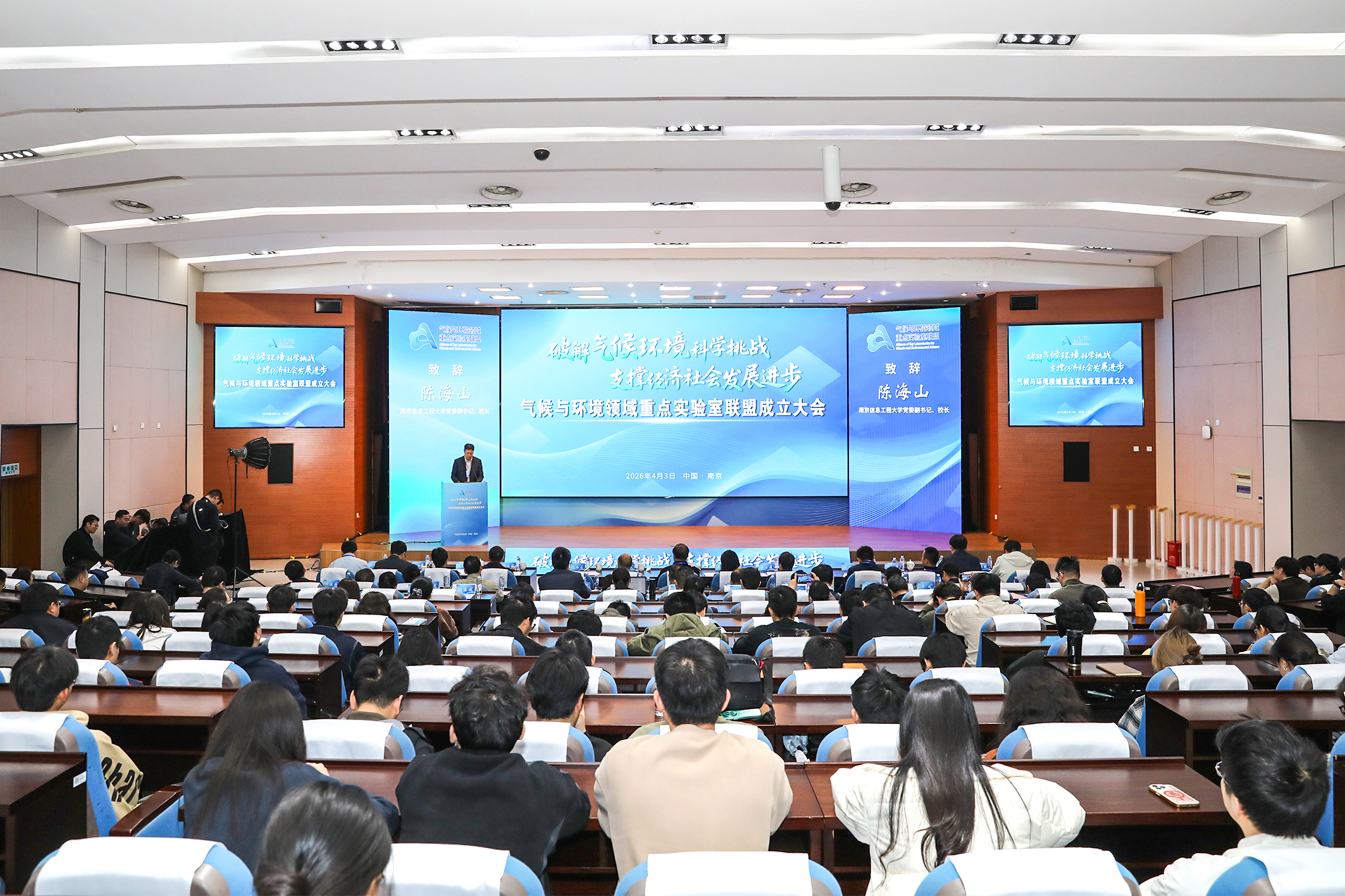 4月3日上午,气候与环境领域重点实验室联盟成立大会在南京信息工程大学举行。该联盟的正式成立,标志着我国气候与环境领域战略科技力量的协同进入全新的历史阶段。中山大学教授、中国科学院戴永久院士,江苏省科学技术厅副厅长蔡英凤,河海大学副校长宋翔洲教授受邀出席。联盟理事长、气候系统预测与变化应对全国重点实验室主任王会军院士,南京信息工程大学校长陈海山教授出席并讲话。14家联盟成员单位的负责人和骨干精英,以...